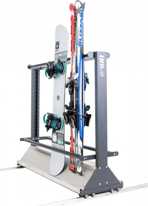 EASY rack Easy is the easiest way to manage your winter equipment. Its versatility allows you to store carving & free ride skies, snb and cross country skies without any adjustment of the rack. This rack is mostly used in ski rental shops, ski services and hotels.